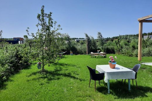 Almere Oosterwold: Bescheiden fijn 3-kamer 'design'huis met heerlijk grote tuin en vrije ligging in het project EcoFruitHof in Oosterwold. Het huis is de helft van een 2-onder-1-kap, mooi afgewerkt en comfortabel, met een gezellige overkapping en lage woonlasten. Het huis is instapklaar.